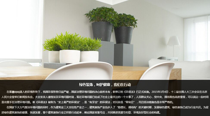 當(dāng)PM2.5、霧霾、空氣質(zhì)量指數(shù)等詞語(yǔ)越來(lái)越多地成為城市人討論的話題時(shí),一批有責(zé)任、有擔(dān)當(dāng)?shù)慕ㄖb飾企業(yè)紛紛將“綠色裝飾”定為自己的長(zhǎng)遠(yuǎn)發(fā)展目標(biāo)。