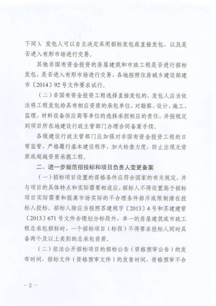 江蘇省住房和城鄉(xiāng)建設(shè)廳關(guān)于明確非國(guó)有資金投資工程發(fā)包方式等有關(guān)問(wèn)題的通知